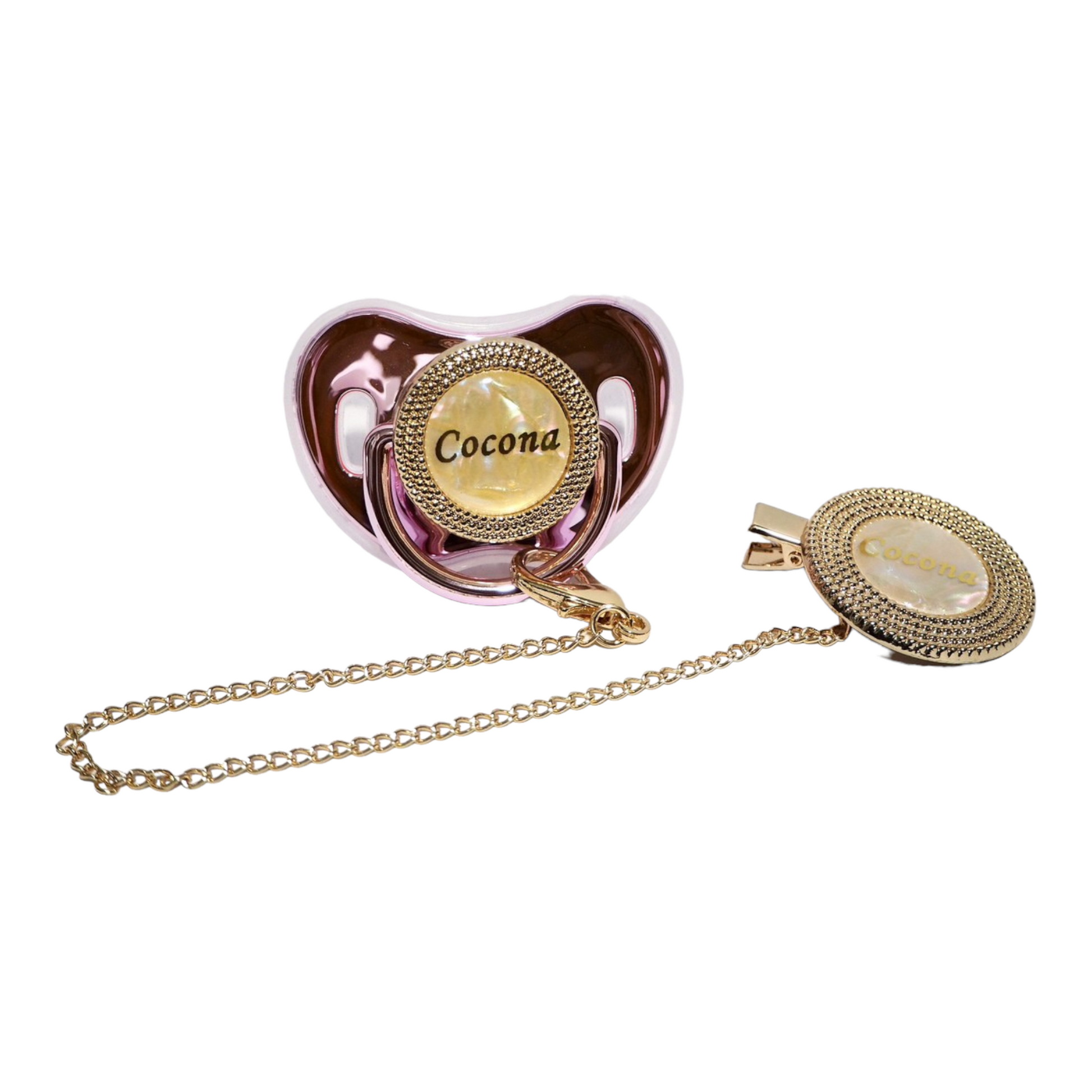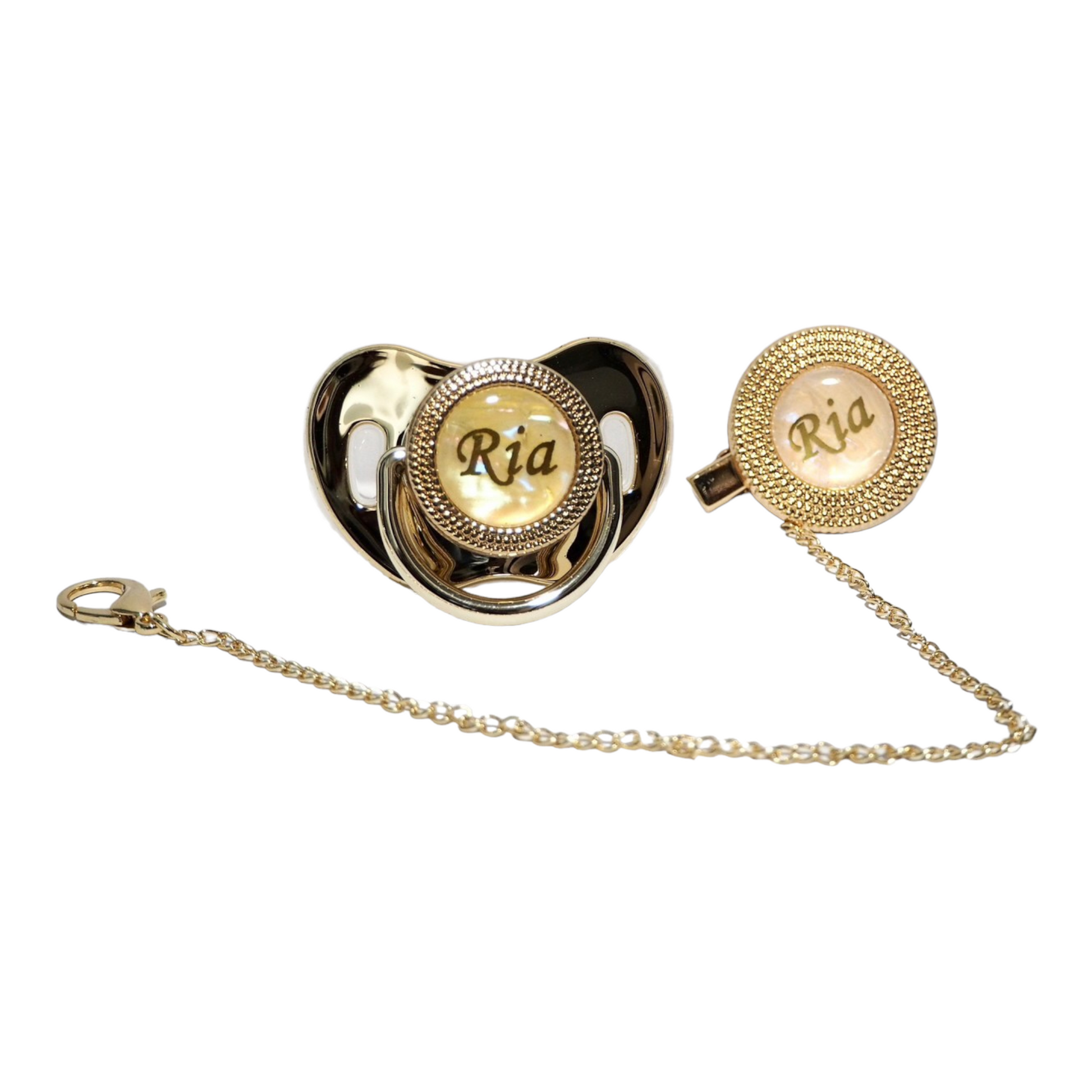【名入れ】クリップチェーン付きネームカスタマイズおしゃぶり メタリック