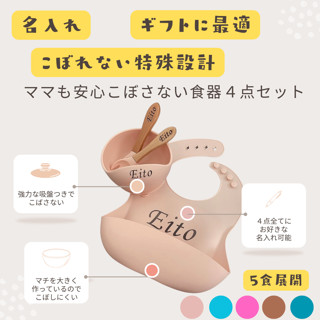 出産ギフト【名入れ可能】ママの負担を減らす離乳食用食器4点セット